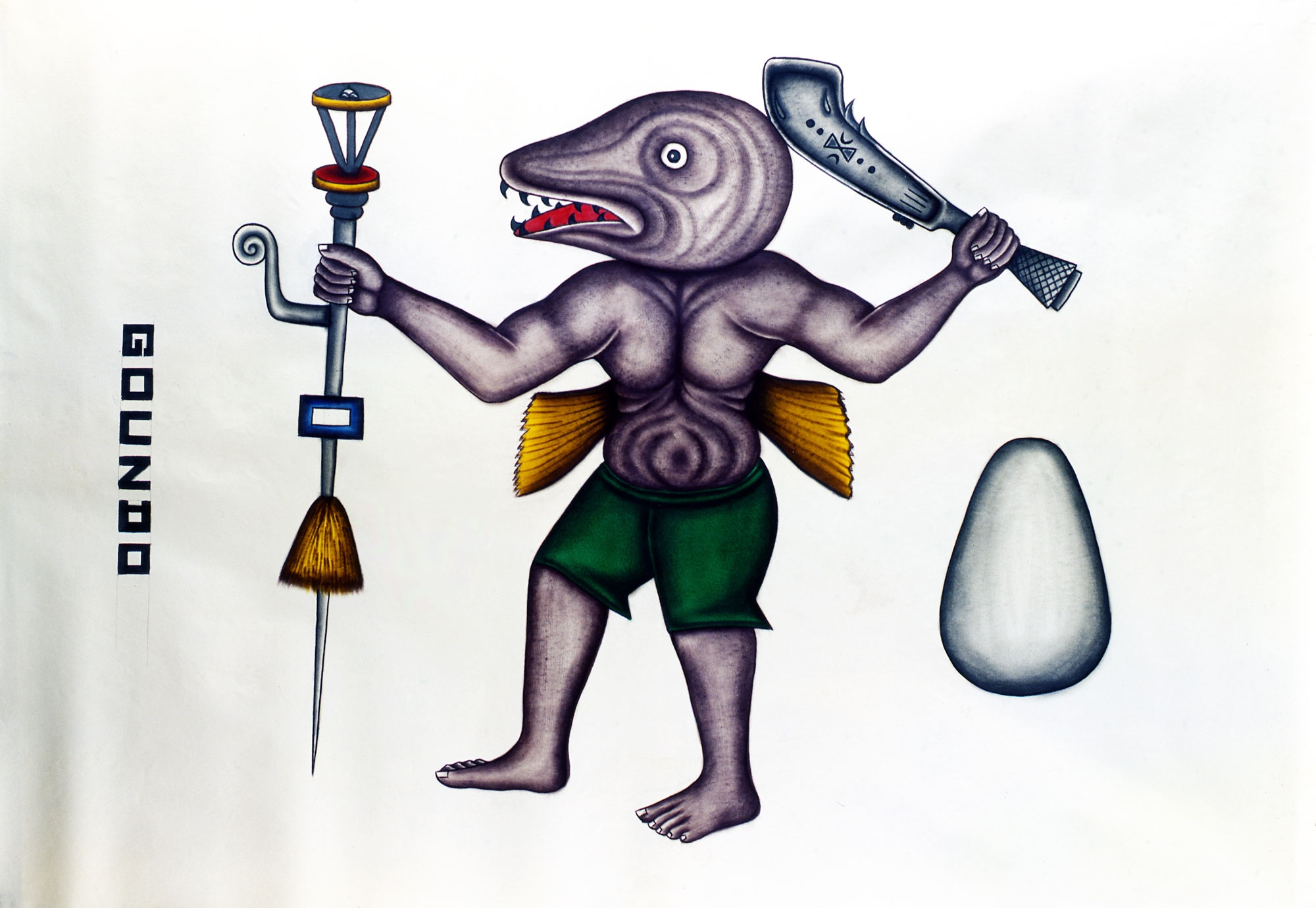 Cyprien Tokoudagba (1939 - 2012) was a sculptor and painter from Abomey, Benin.
