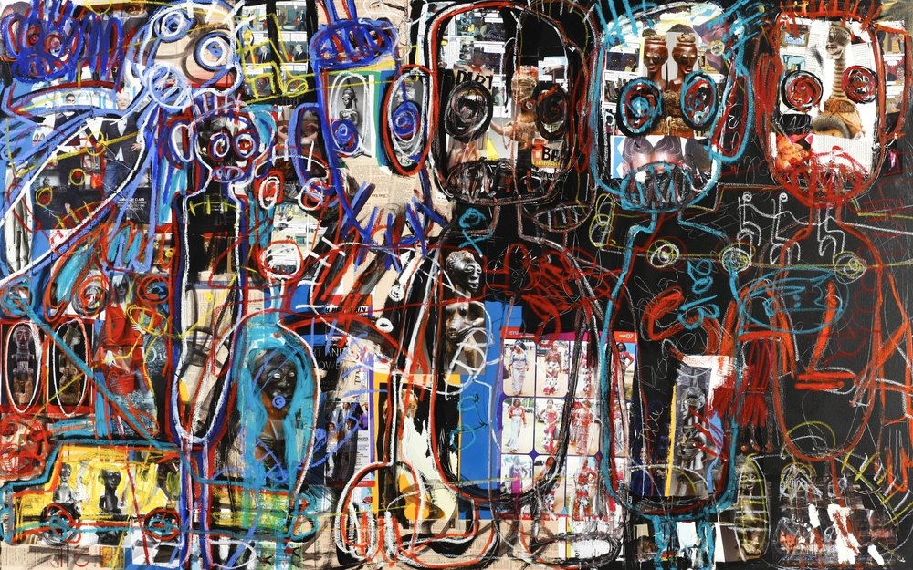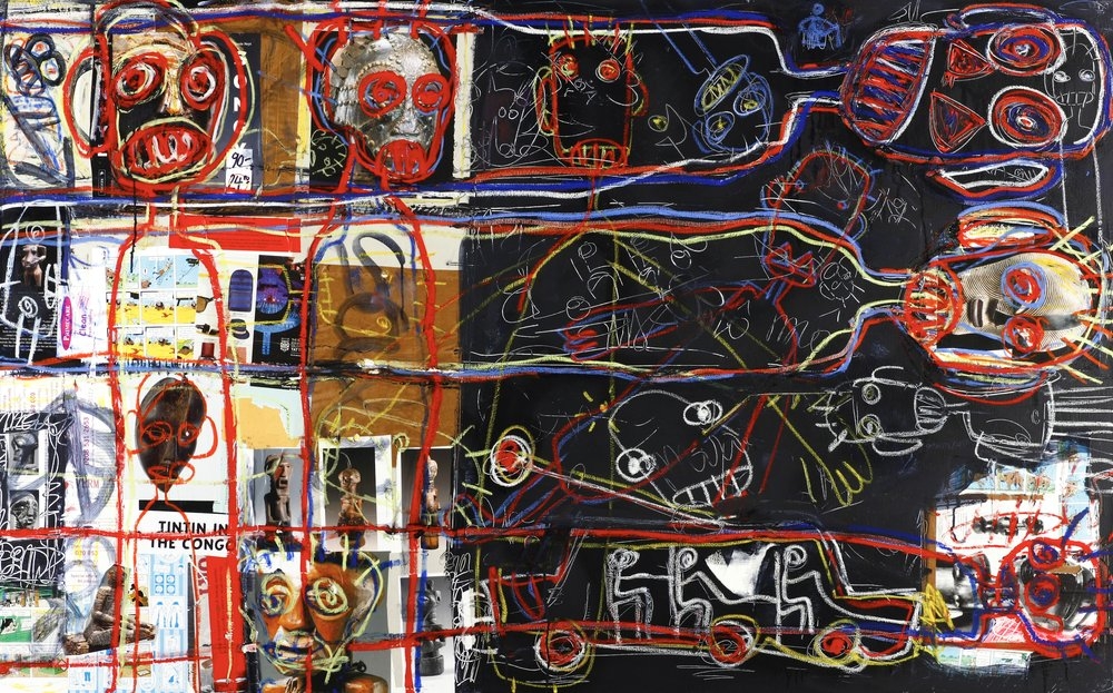 Aboudia is also a master of multi-layered imagery as he mixes with great energy characters from his direct neighbourhood and fragments of found comic strips, advertising and the media. His unrestrained use of violent figuration is a welcome reminder of the power of paint to suggest the vitality and chaos of life.