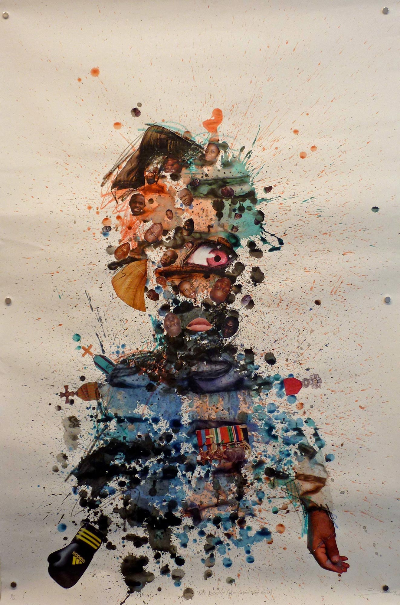 Bandoma describes his work as recycling found objects, appropriating imagery from contemporary advertising and magazines, in order 'to breathe new life into them'. In his most recent series, the artist creates imagined portraits of the inhabitants of Congo's sprawling capital Kinshasa. A shape shifting species of genetic mutations, his images are contemporary embodiments of traditional African gods and fetish objects.