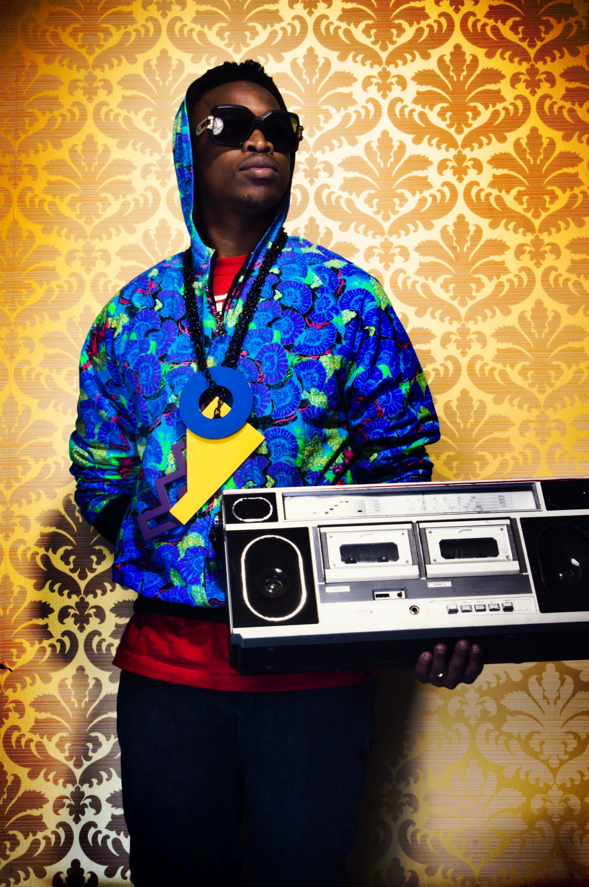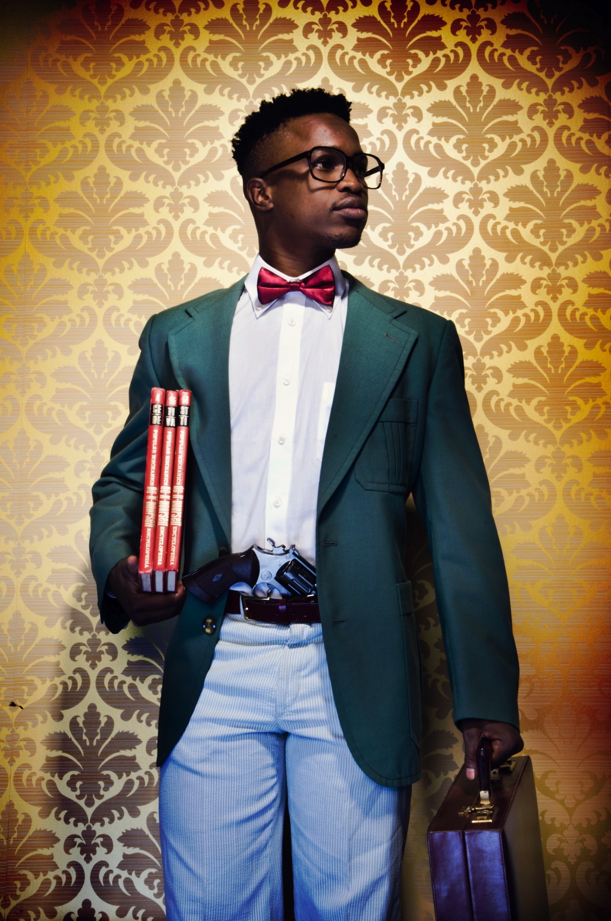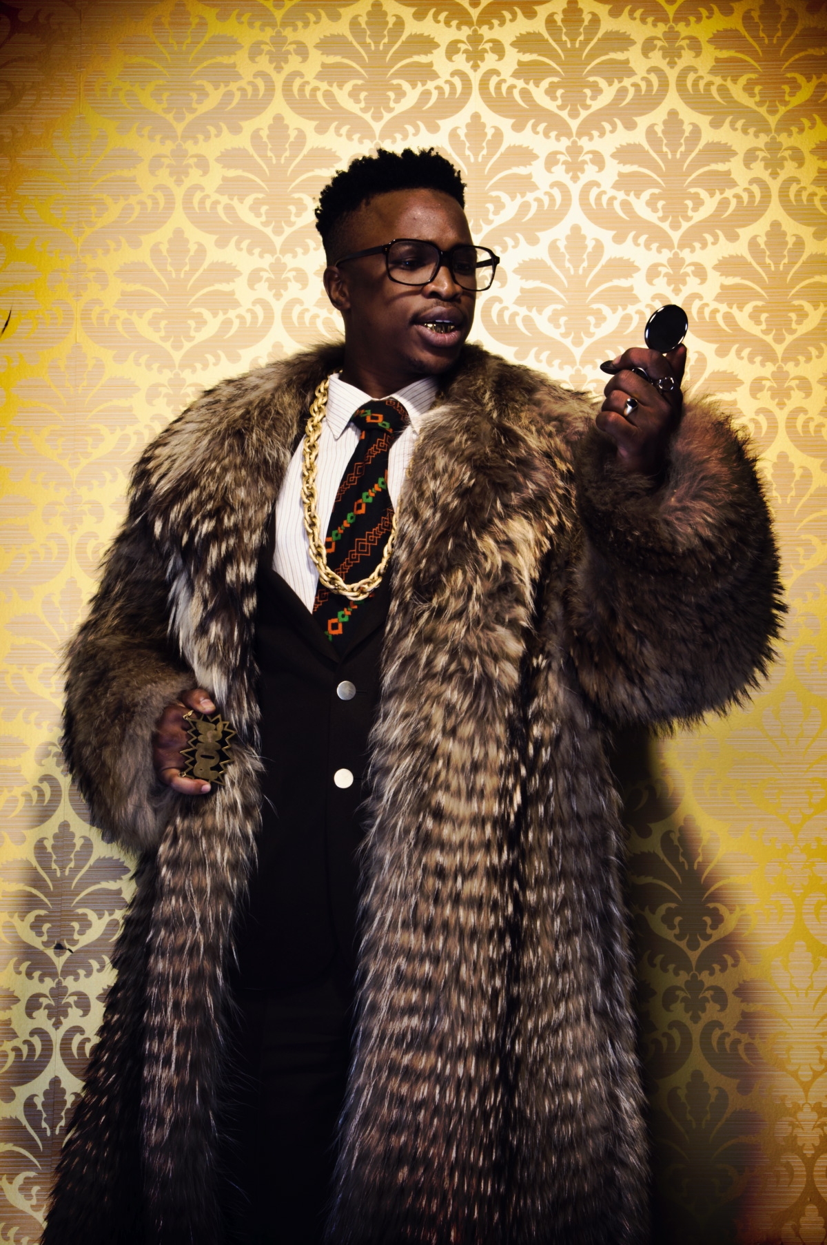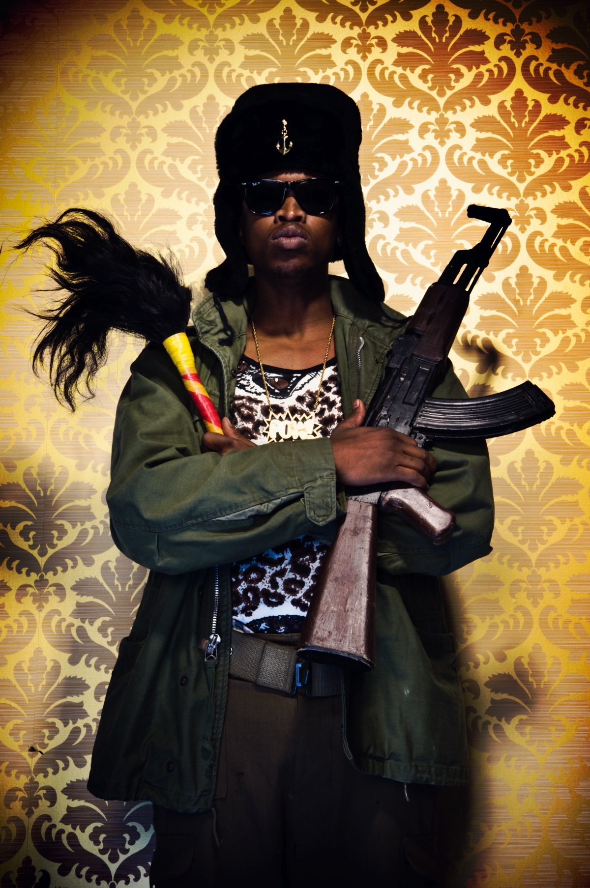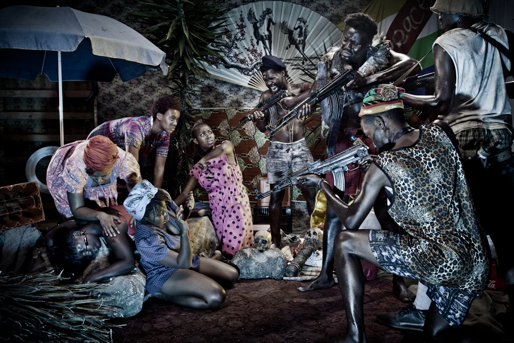His works fluidly draw from hip-hop, street art, youth culture and graffiti. He explores themes of urban space, exile, xenophobia, and displacement, as well as the constructed nature of African states and the performative guises of leaders.The photographed presented here are part of a satirical series « The Parliament », of over the top, mock portraits. It depicts the fictitious characters of an imaginary government cabinet in a parody of media representations of masculinity and political power. The series draws upon the conventions of African studio portraiture, dramatised magazine features, hip-hop, film and fashion as well as the story lines, stereotyped characters and plots of soap operas.