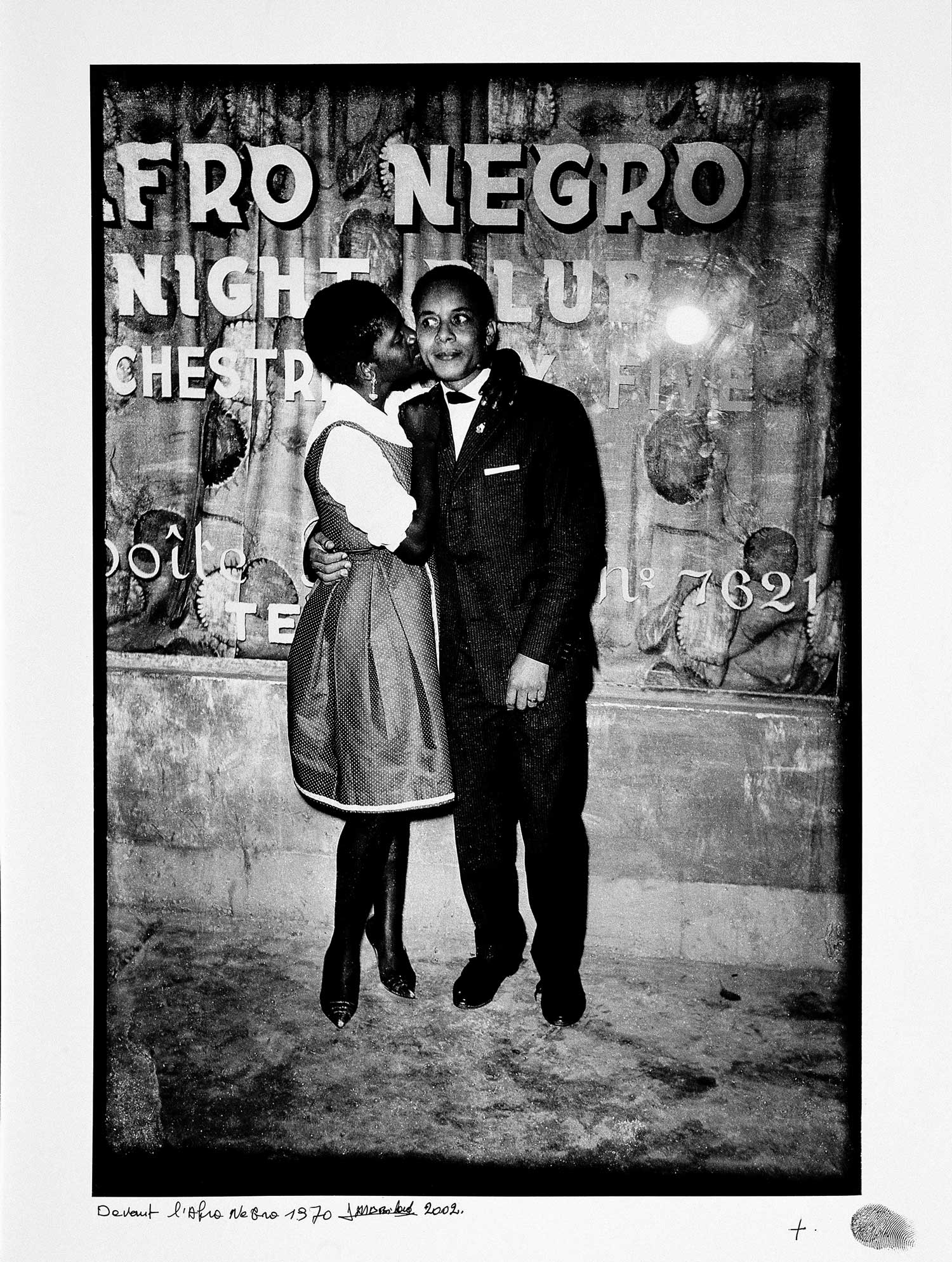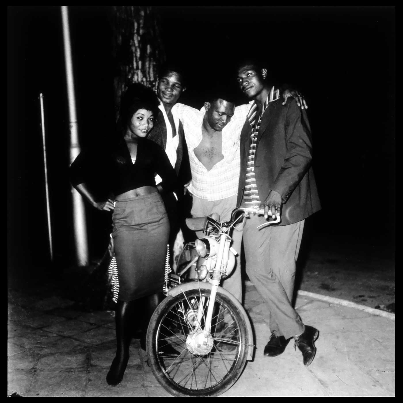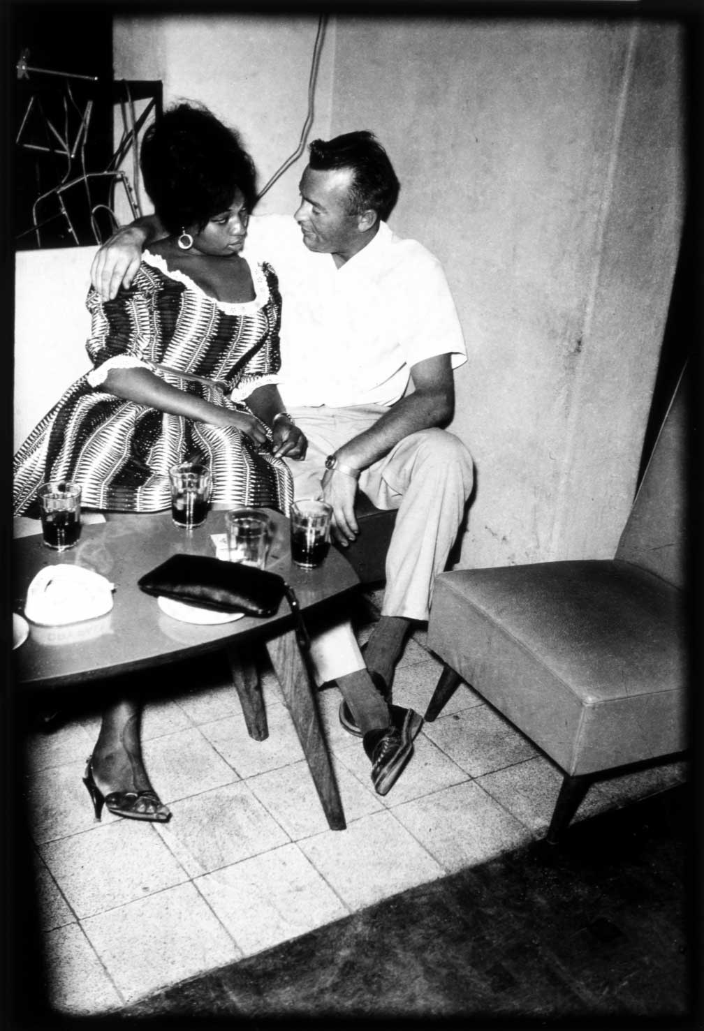 Depara came to photography almost by accident. To record his wedding in 1950 he bought himself a small Adox camera—after which he never ceased to seek out new subjects for his lens. Settling in Kinshasa in 1951, Depara at first combined his photography with various small jobs: repairing bicycles and cameras, dealing in scrap metal. In 1954 the celebrated Zairian singer Franco invited him to become his official photographer, launching Depara’s career as a chronicler of Kinshasa social life in the era when the Rumba and the Cha Cha defined the city’s rhythm. He set up a studio under the name Jean Whisky Depara and spent his days in bars like the Kwist, the OK Bar, or the Sarma Congo. At night he hung out at such clubs as the Afro Mogenbo, the Champs-Elysées, the Djambo Djambu, the Oui, the Fifi, the Show Boat. Night owls particularly fascinated him and with his flash Depara captured an Africa stripped of conventional social codes. Interracial couples, hipsters, and those who in imitation of James Dean chose to “Live fast, die young” became both his subjects and his clients.