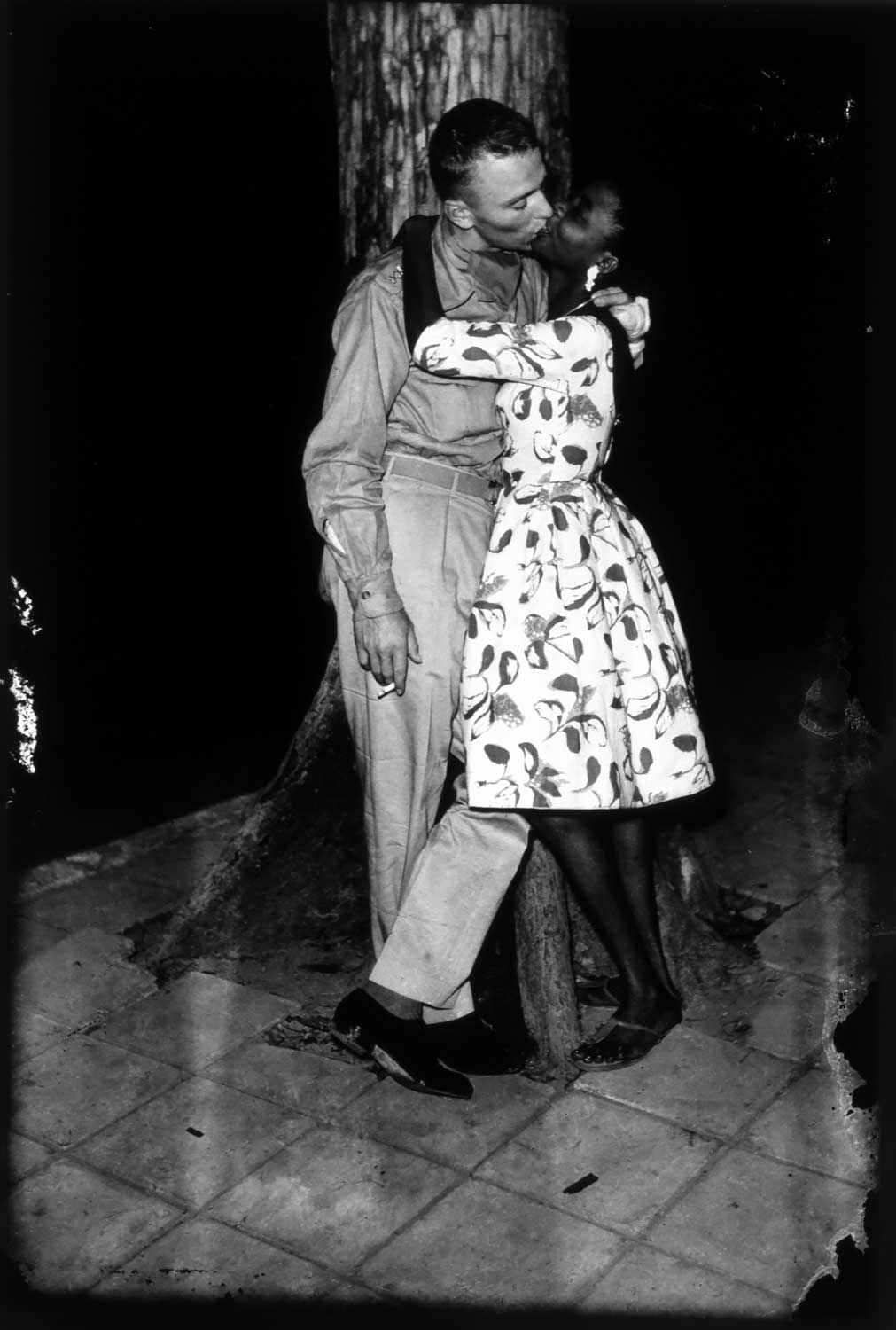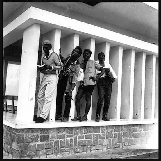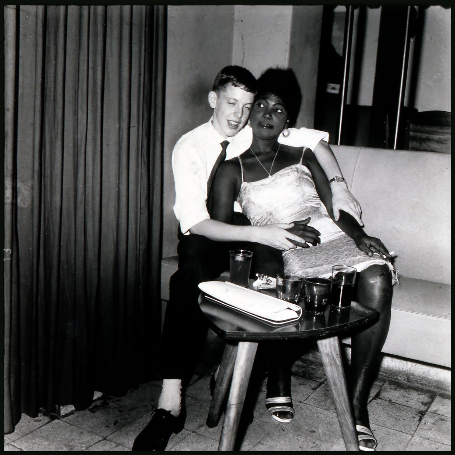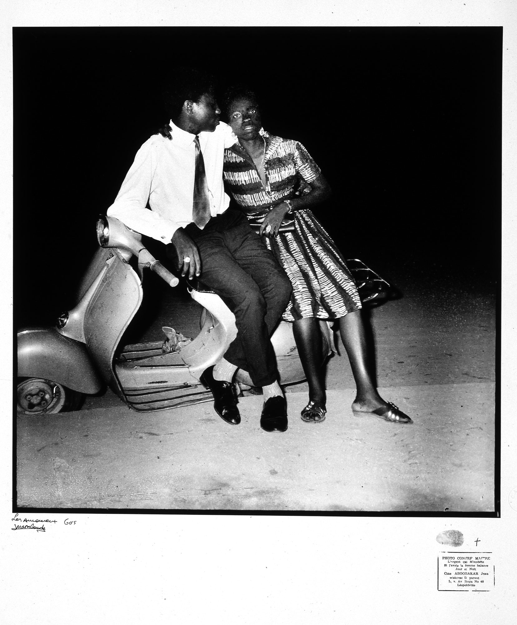 Depara came to photography almost by accident. To record his wedding in 1950 he bought himself a small Adox camera—after which he never ceased to seek out new subjects for his lens. Settling in Kinshasa in 1951, Depara at first combined his photography with various small jobs: repairing bicycles and cameras, dealing in scrap metal. In 1954 the celebrated Zairian singer Franco invited him to become his official photographer, launching Depara’s career as a chronicler of Kinshasa social life in the era when the Rumba and the Cha Cha defined the city’s rhythm. He set up a studio under the name Jean Whisky Depara and spent his days in bars like the Kwist, the OK Bar, or the Sarma Congo. At night he hung out at such clubs as the Afro Mogenbo, the Champs-Elysées, the Djambo Djambu, the Oui, the Fifi, the Show Boat. Night owls particularly fascinated him and with his flash Depara captured an Africa stripped of conventional social codes. Interracial couples, hipsters, and those who in imitation of James Dean chose to “Live fast, die young” became both his subjects and his clients.