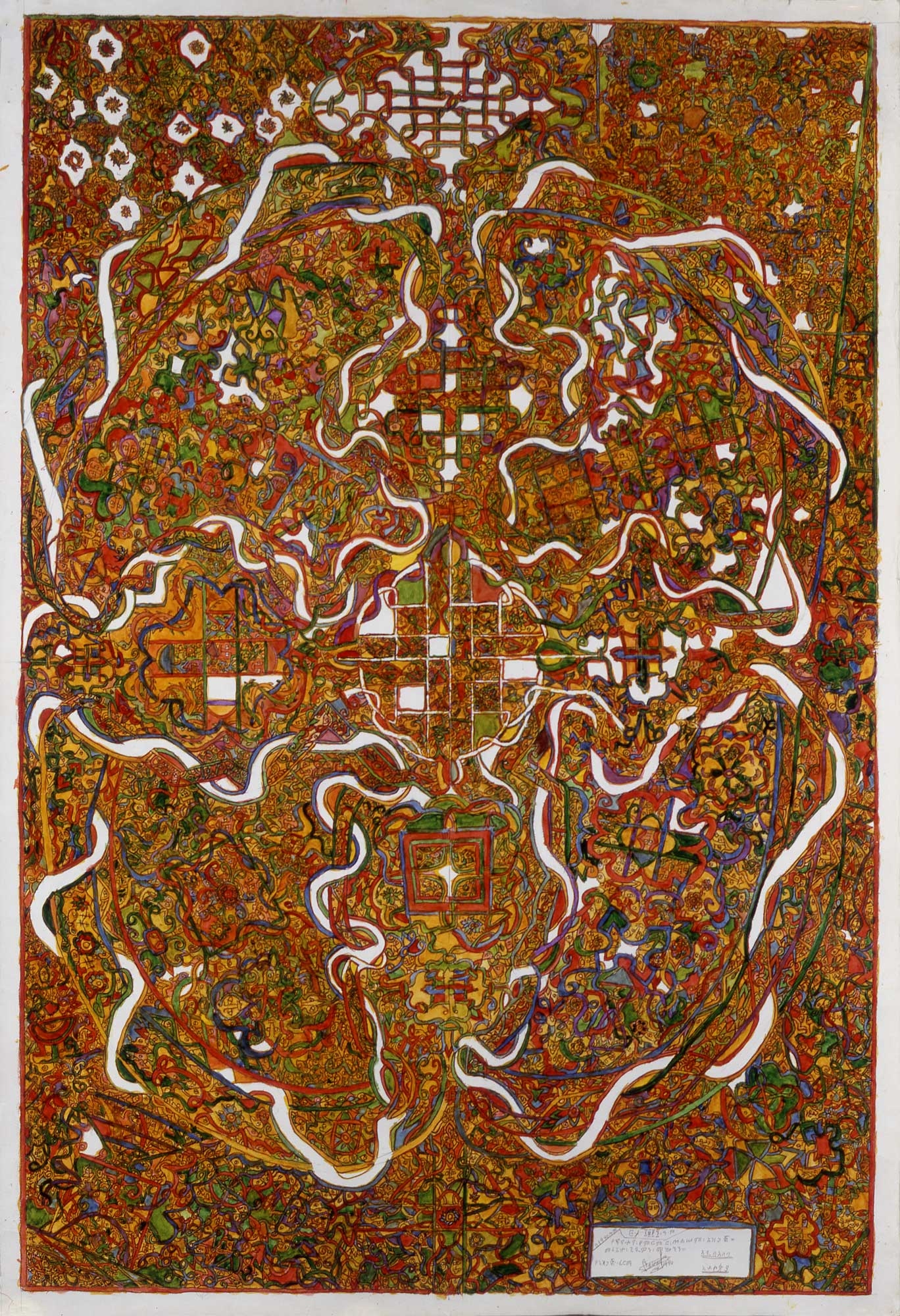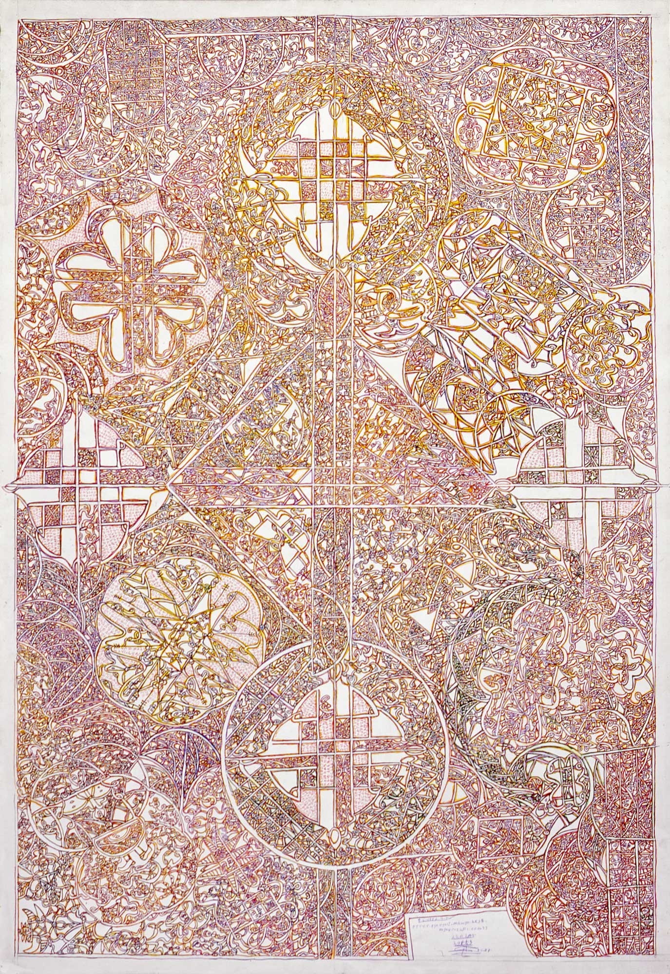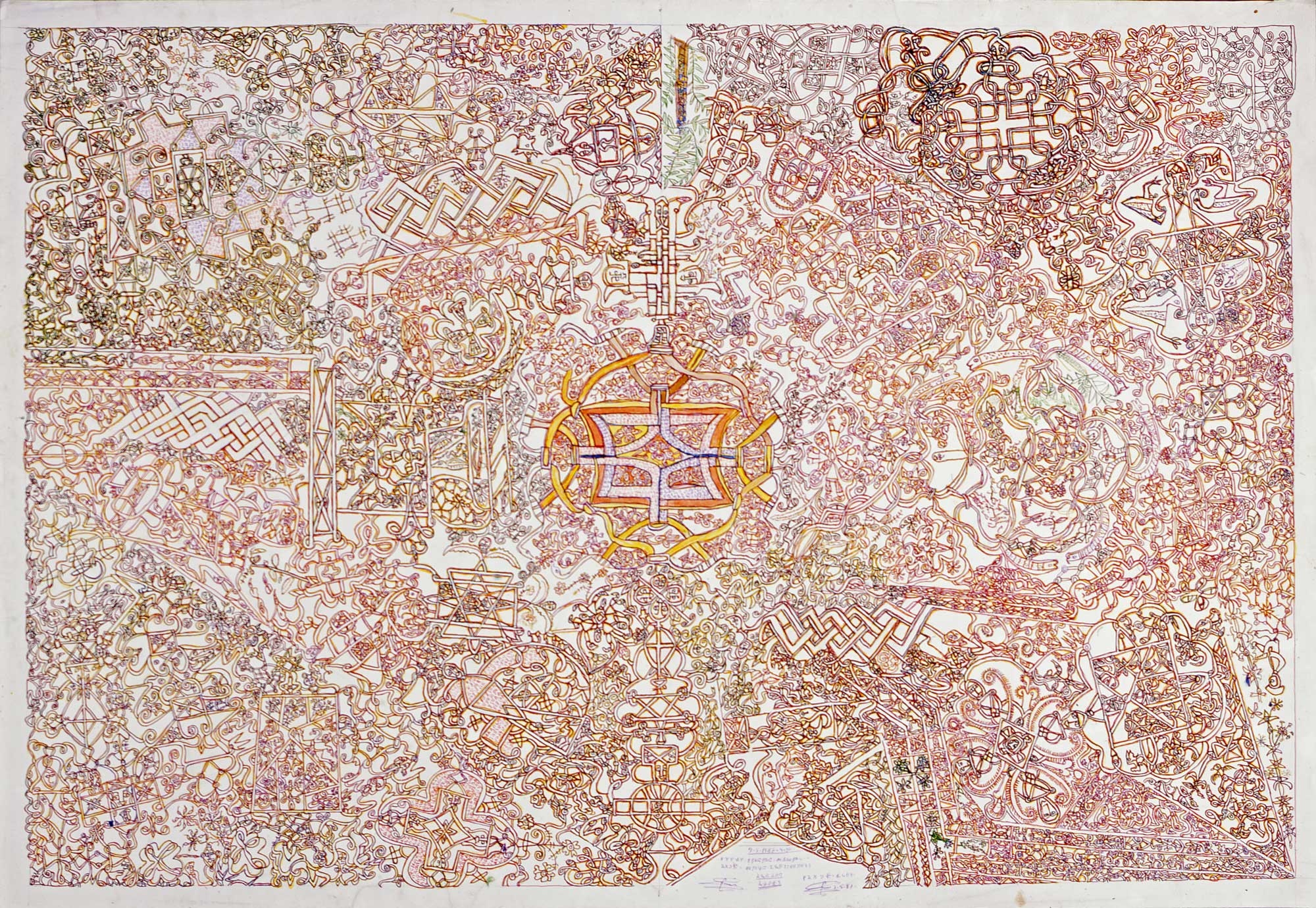 Gedewon called his works talismans of research and study. The purpose of his art was to heal body and soul through ancient patterns, imagery, and invocation. While employing established models, Gedewon also considered it necessary to question the patient in order to incorporate specific experiences and visions into the talisman. In turn, he would create new images for new problems. His works, executed in pencil, ballpoint pen, or ink on paper, are primarily graphic and within their geometric framework, highly representational. In these talismans of research and study, Gedewon is both the healerand because of his empathythe patient, artist and hallucinator in anothers stead.