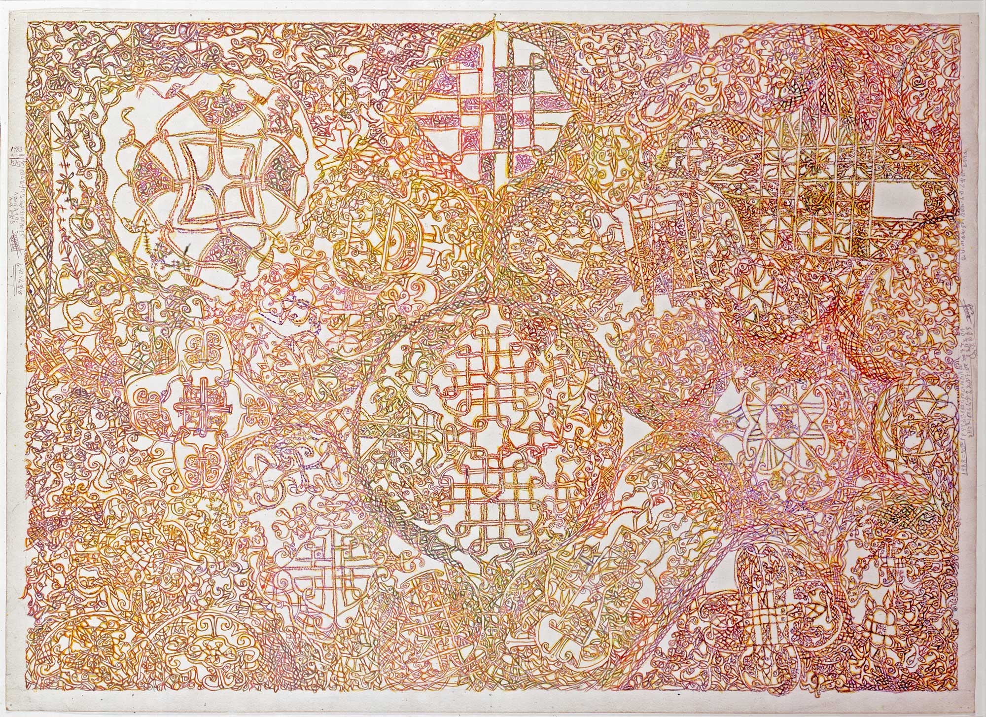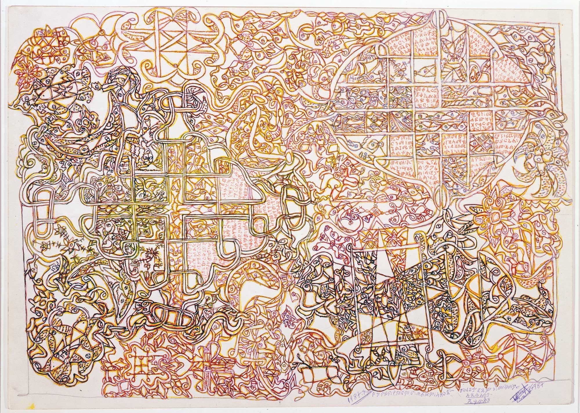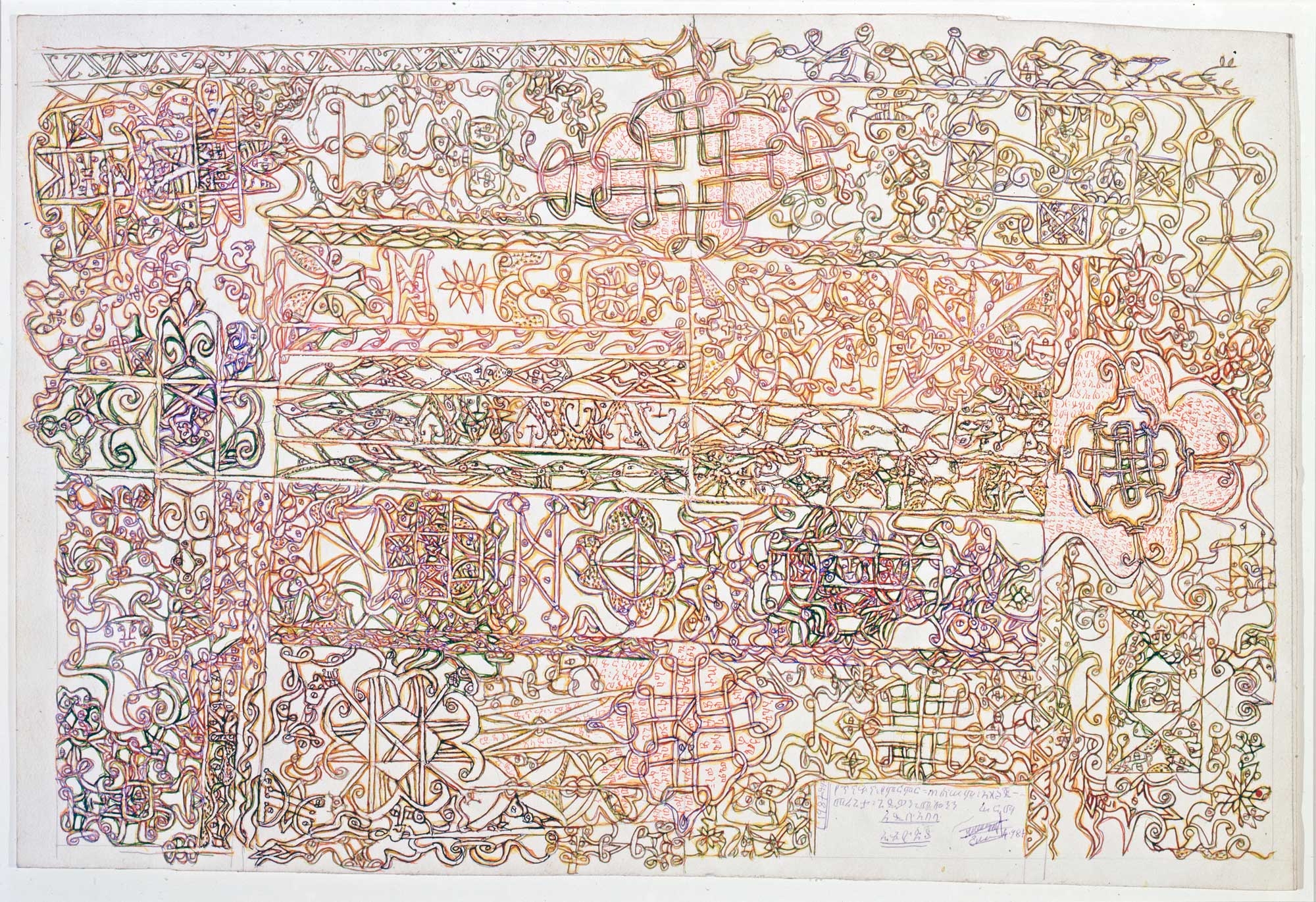 Gedewon called his works talismans of research and study. The purpose of his art was to heal body and soul through ancient patterns, imagery, and invocation. While employing established models, Gedewon also considered it necessary to question the patient in order to incorporate specific experiences and visions into the talisman. In turn, he would create new images for new problems. His works, executed in pencil, ballpoint pen, or ink on paper, are primarily graphic and within their geometric framework, highly representational. In these talismans of research and study, Gedewon is both the healerand because of his empathythe patient, artist and hallucinator in anothers stead.
