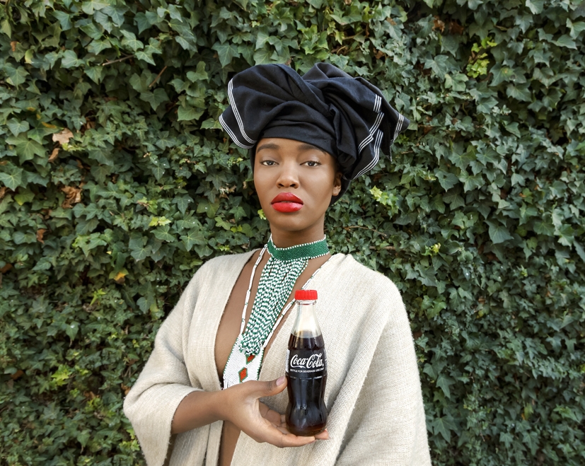 "Dubbed the coolest kid in Cape Town by Vogue, 20 year old self-portraitist Tony Gum will have her first solo presentation at Christopher Moller Gallery at the FNB JoburgArtFair this year. The lively young artist fuses specific brands like Coca-Cola with an array of projected identities that range from the matriarch in traditional Xhosa costume to the West End Playboy Bunny. In doing so, she presents an ironic and playful take on the universal preoccupation with identity politics.