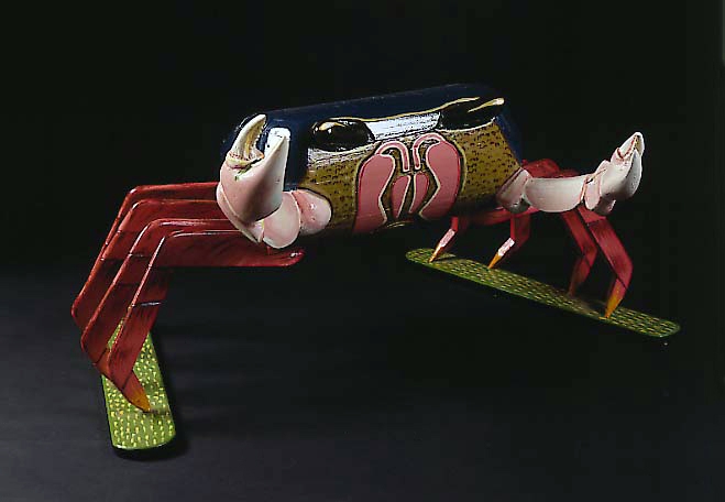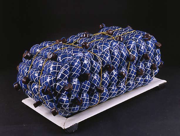 Samuel Kane Kwei upholds his father’s tradition of decorating coffins in a manner which reflect upon the life of the deceased. Kane Kwei (1922-1992) was trained as a cabinet maker, and in 1951 he opened his own workshop in Teshie, a fishing village on the outskirts of Accra. He built his first decorated coffin—in the shape of a dugout—for one of his uncles, a fisherman who had owned flotilla of them. He dedicated himself from then on to this new funerary art and worked, secluded, almost exclusively for the elders of his clan. The art dealer Vivian Burns introduced his work to American audiences in 1974; over the last thirty years his sculptures and those of his workshop have made an original contribution to the tradition of funerary cults in Western Africa—they have also been collected and exhibited internationally.