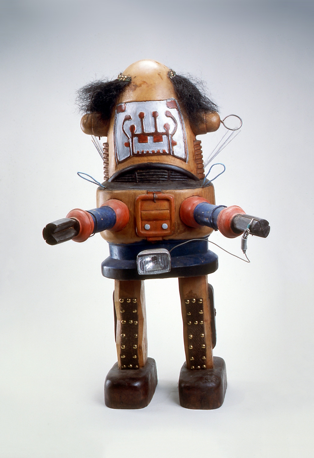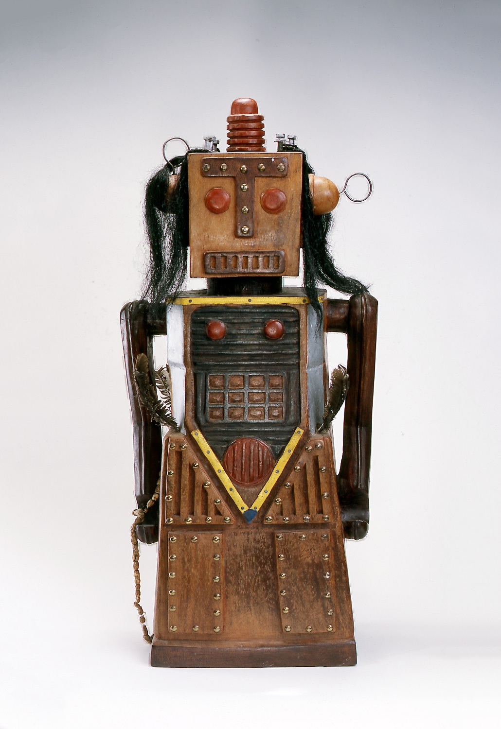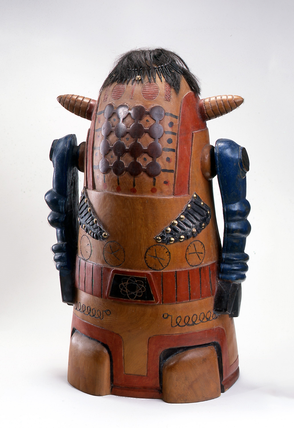 Painted wood, metal and hair