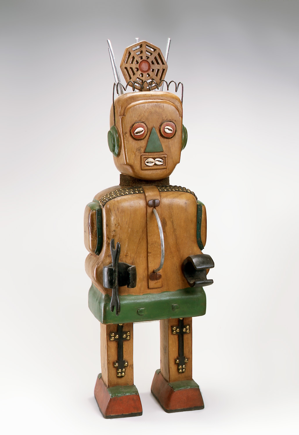 Over the following decade Kouakou started to produce larger sculptures, and in particular he has concentrated on a series of robots which are based on action figures and children’s toys. At the same time, he sought to express the artist’s personal touch, concentrating over a period of several months on projects to create unique and contemporary interpretations of traditional sculpture. Contrary to the general practice among the artisans of Grand-Bassam, he does not mass produce the same object over and over again, since doing so would cause sculptures to lose their individual value. He was also among the sculptors who contributed to the Clubs of Bamako project, now in the collection of the Museum of Fine Arts, Houston.