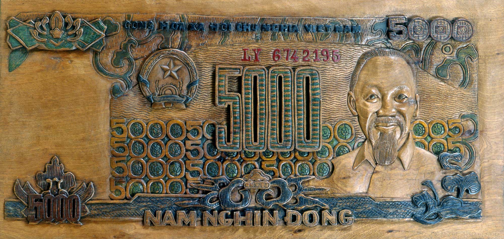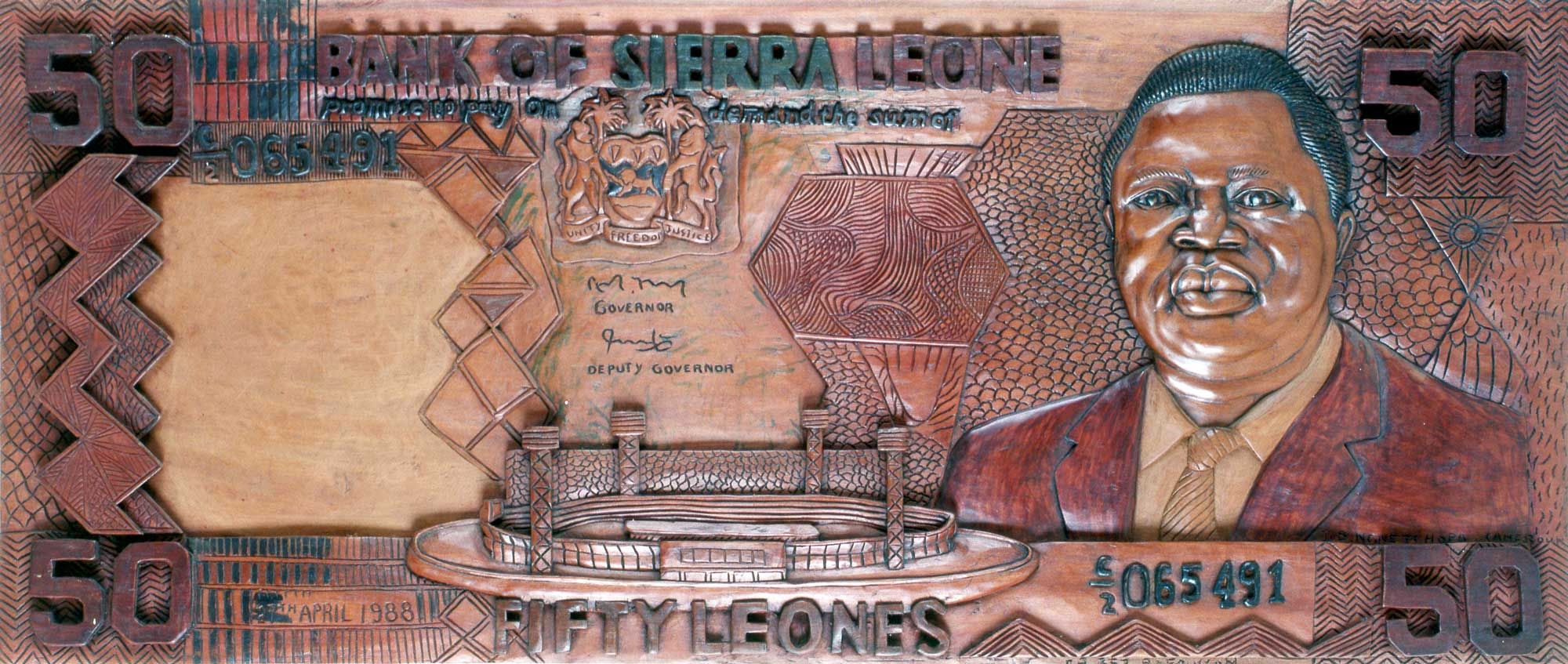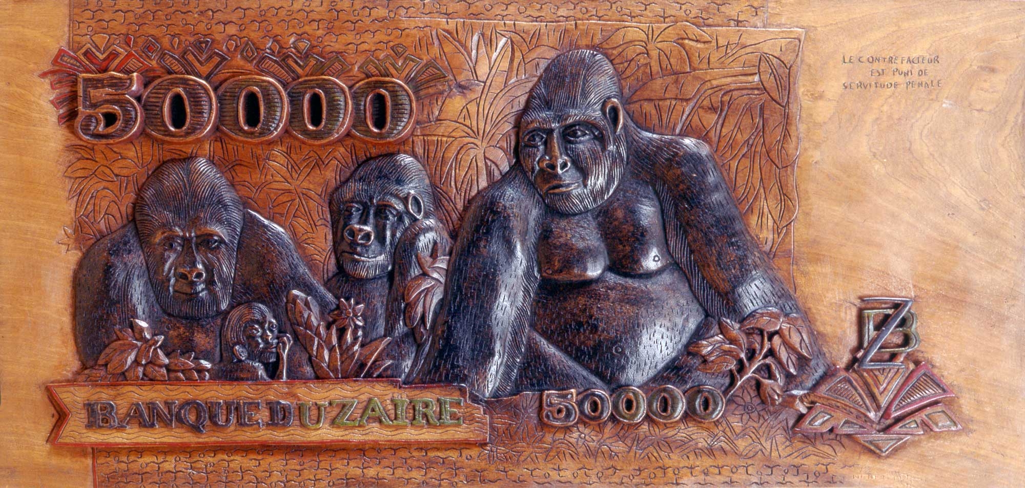 Then came a whole series dedicated to African banknotes. Since 1989, he has done banknotes from all over the world. When I asked him about his new undertaking, he answered: "Some rich people put their money in a vault. This money is dormant and loses value. I ask these rich people to surrender part of this money to me and I will carve them money of wood which they can live with and show to others. And this wooden money will also acquire value."
