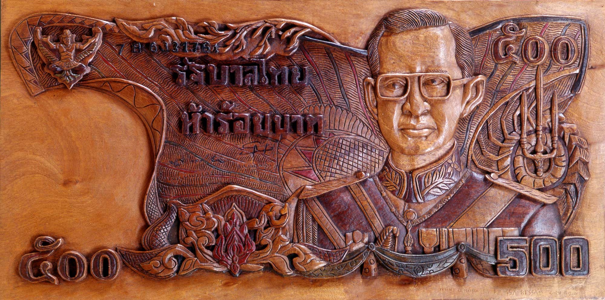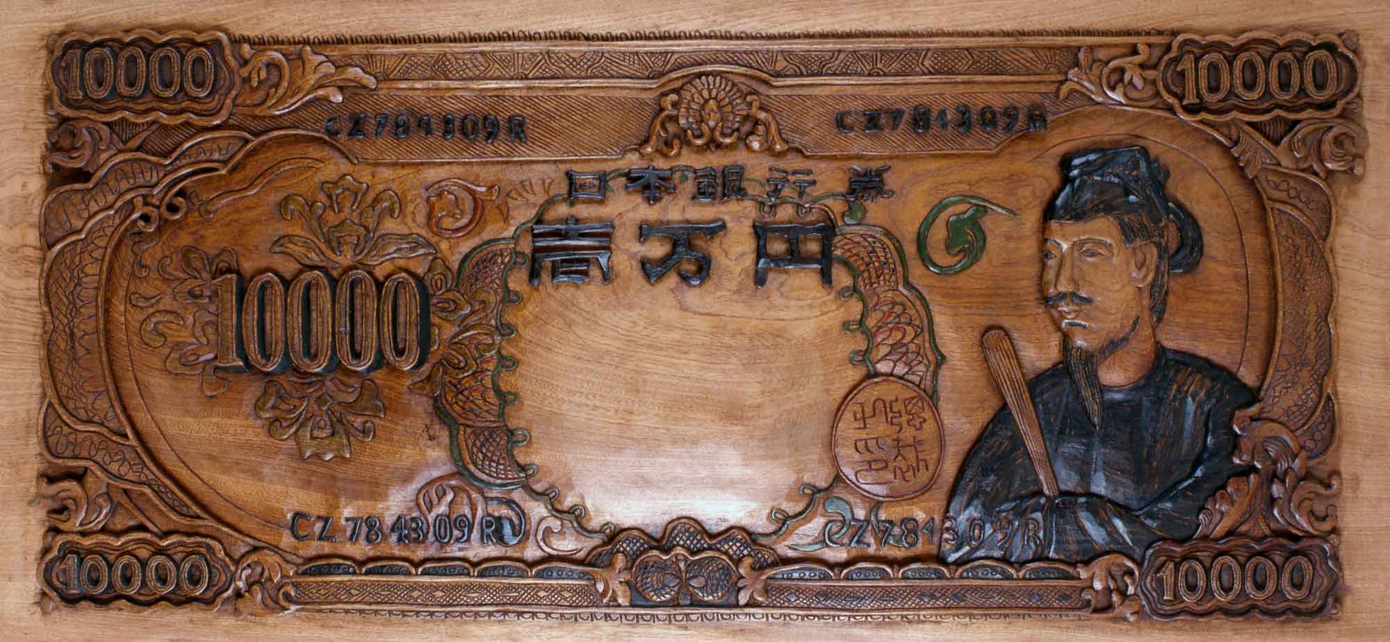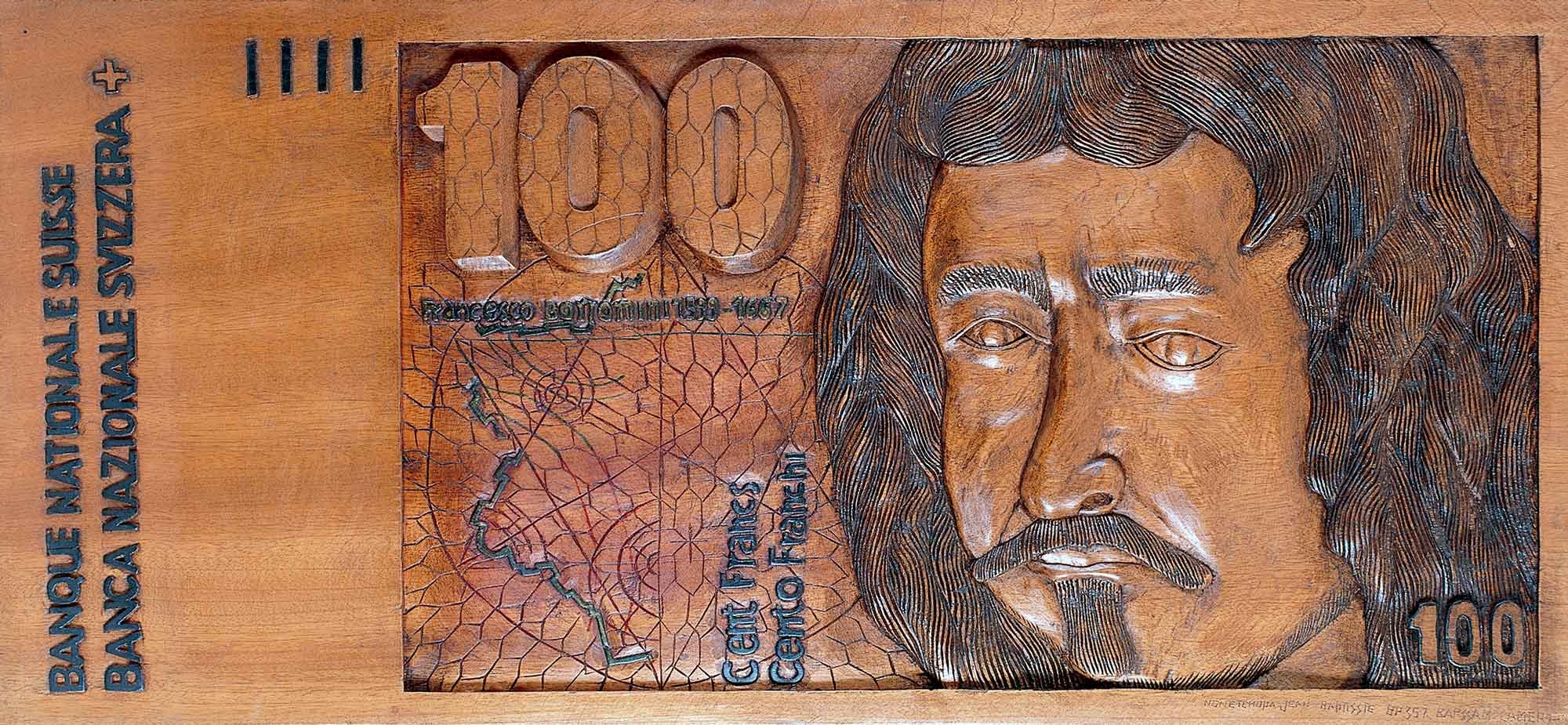 Then came a whole series dedicated to African banknotes. Since 1989, he has done banknotes from all over the world. When I asked him about his new undertaking, he answered: "Some rich people put their money in a vault. This money is dormant and loses value. I ask these rich people to surrender part of this money to me and I will carve them money of wood which they can live with and show to others. And this wooden money will also acquire value."