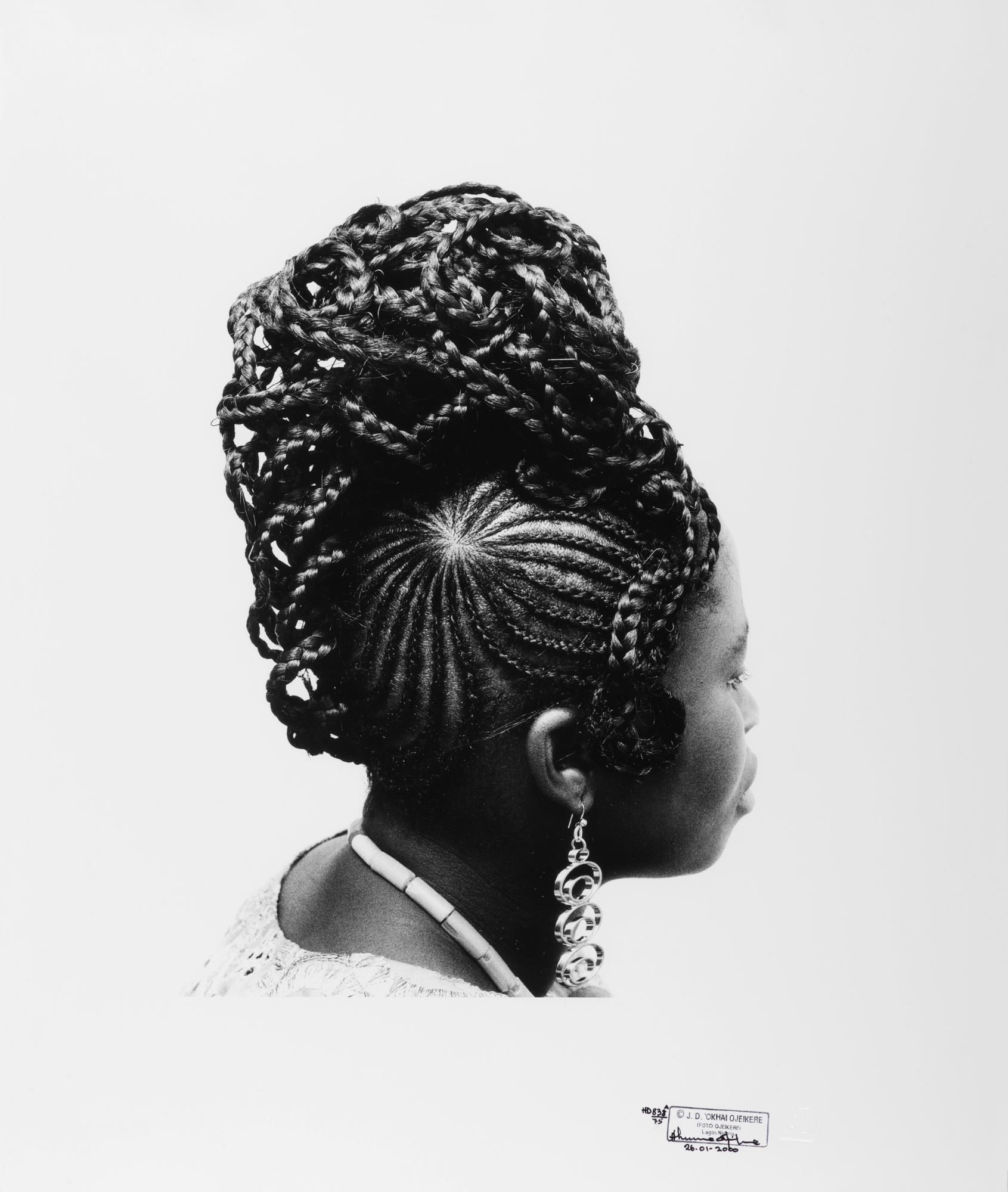 In 1967 he joined the Nigerian Arts Council, and during their festival of the following year he began to take series of photographs dedicated to Nigerian culture. This body of work, now consisting of thousands of images, has become a unique anthropological, ethnographic, and documentary national treasure. Most African photographers of his generation only worked on commission; this project, unique in its genre, flourished without any commercial support. The Hairstyle series, which consists of close to a thousand photographs, is the largest and the most thorough segment of Ojeikeres archive. To watch a hair artist going through his precise gestures, like an artist making a sculpture, is fascinating. Hairstyles are an art form, Ojeikere has commented. He photographs hairstyles every day in the street, in offices, at parties. He records each subject systematically: from the rear, sometimes in profile, and occasionally head-on. Those from the rear are almost abstract and best reveal the sculptural aspect of the hairstyles. For Ojeikere, this is a never ending project as hairstyles evolve with fashion: All these hairstyles are ephemeral. I want my photographs to be noteworthy traces of them. I always wanted to record moments of beauty, moments of knowledge. Art is life. Without art, life would be frozen.