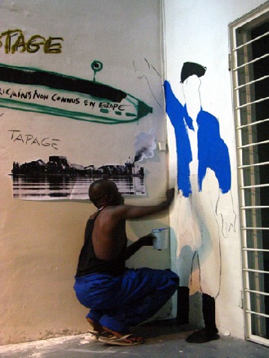 Réalisation d'une fresque murale avec Vitshois Mwilambwe Bondo, Atelier du Plateau, Paris, France
