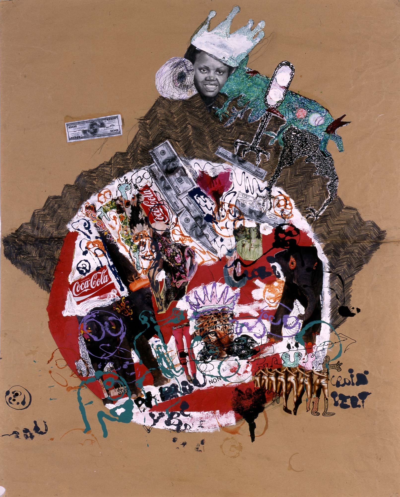 Acrylic, pen, ink and collage on kraft paper