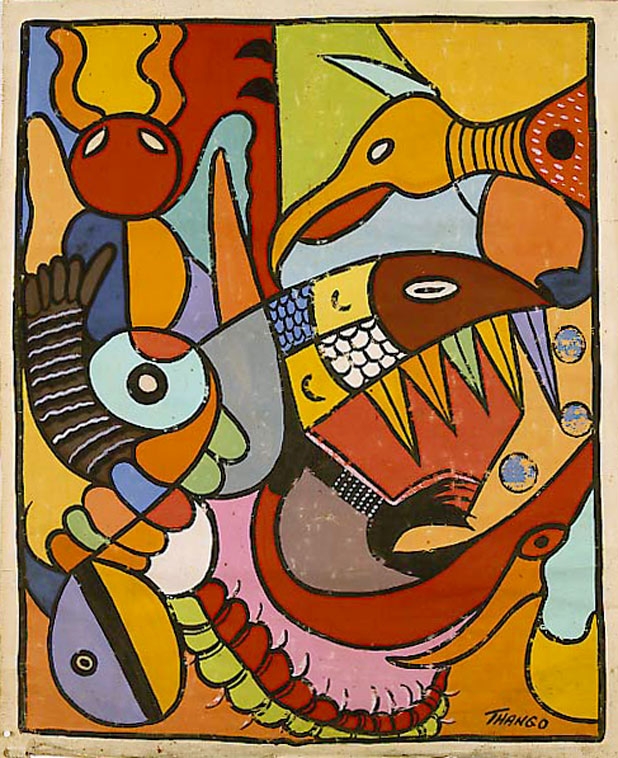 From 1959 - 1972 his art flourished under Alhadeff. Thanks to this collaboration, six of Thango's works were presented in New York in 1961.
