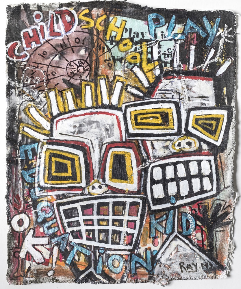 His unique style, "Trace" is made up of a collection of newspapers, magazines, acrylic paint, coffee oil pastel, and oil paint.